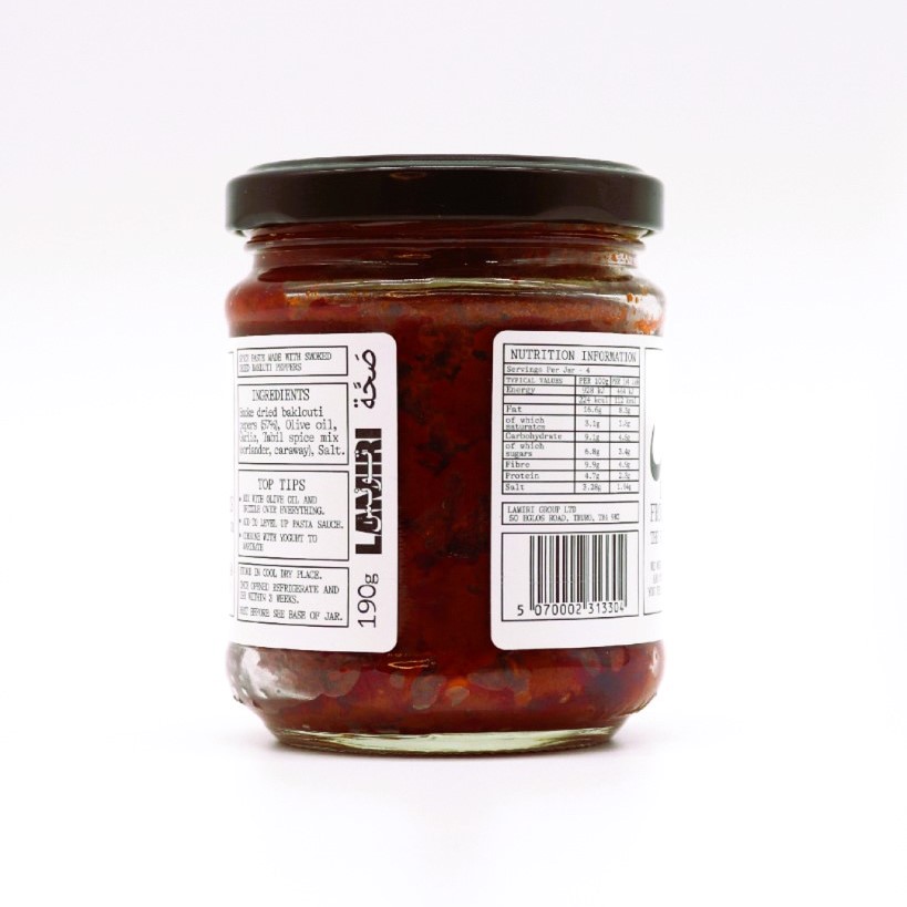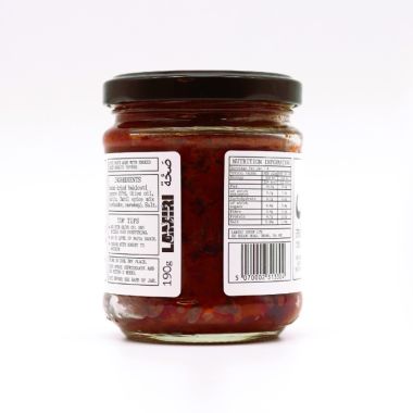 Dried chillies, Tabil (caraway seeds, coriander seeds, cumin seeds, red chilli flakes), Extra virgin olive oil, Salt, Fresh Garlic.