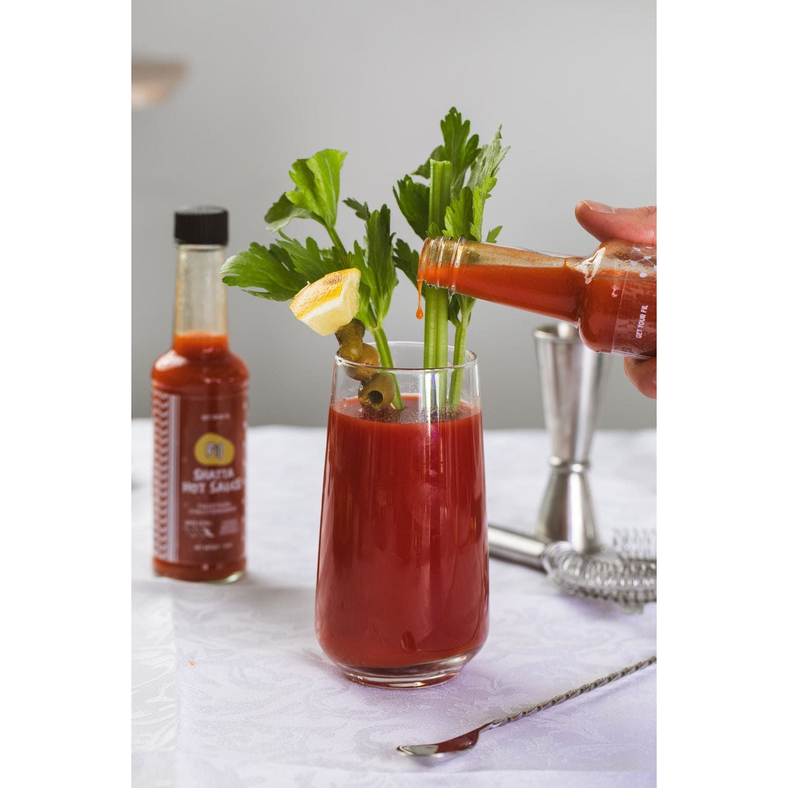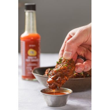 ‘Shatta Brine’, Apple Cider Vinegar, Sugar, Salt, Extra Virgin Olive Oil, Dried Bird’s Eye Chilli, Garlic Powder, Citric Acid, White Pepper, Smoked Paprika. Stabiliser: Xanthan Gum.